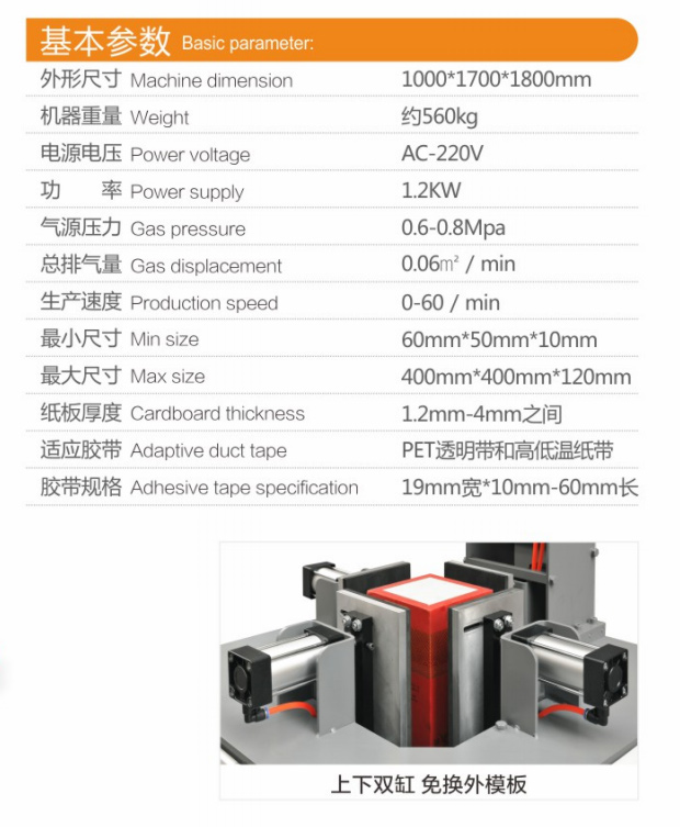 DG-700B豎式酒盒壓盒機為德高機械DG 700酒盒壓盒機的第二代新產品,最新開發(fā)設計的這款新機型,整機外觀設計緊湊,四面均為雙氣缸,壓力更為均衡、合理,五面模板可調,100-150寬*200-300高尺寸以內的酒盒免換外模板,操作方便生產效率高。
